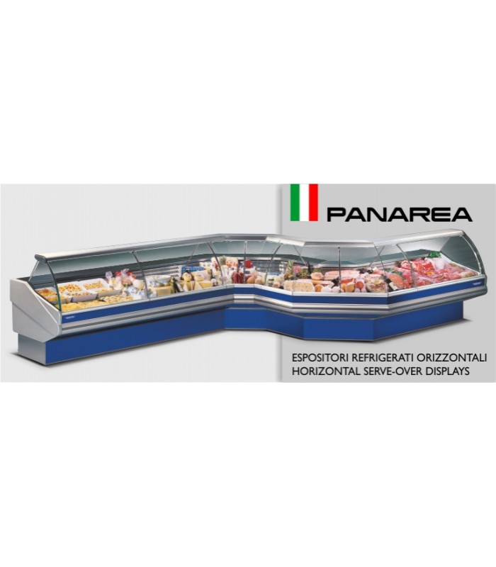 Espositore refrigerato orizzontale a bassa ventilazione - Angolo di raccordo chiuso a 90° - Lunghezza 1440 mm – Vetrina refrigerata e canalizzabile – senza spalle - Norma CE